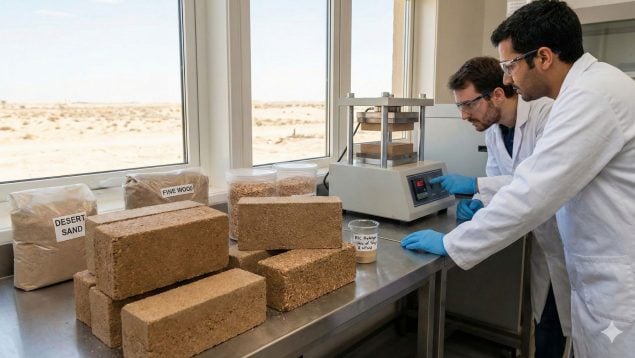 Un grupo de científicos descubrió que una mezcla de arena del desierto con polvo de madera funciona bajo condiciones de calor y presión extremas. Los investigadores lograron que esta combinación, a la que llamaron Botanical SandCrete, alcance una resistencia a la flexión de hasta 10 MPa. Esto es sorprendente, ya que la cifra supera con creces los 5 MPa exigidos por la normativa industrial japonesa para bloques de pavimentación.