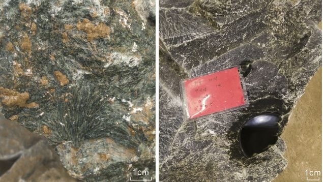 Estos fluidos, cargados de elementos químicos, se desplazaron a lo largo del contacto entre ambos tipos de roca, creando ramificaciones ricas en nefrita. El resultado es un conjunto de bloques de color negro y verde oscuro que rellenan las vetas del yacimiento.
