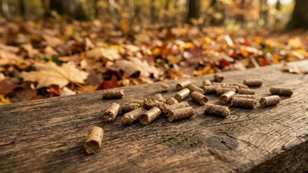 Los pellets de hojas comprimidas alcanzan una densidad mínima de 650 kg/m³, frente a los 180 kg/m³ de las hojas sin procesar. Esa diferencia mejora la eficiencia de combustión, facilita el transporte y permite almacenar mucho más material en el mismo espacio.