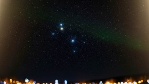 - Encuentra la constelación de Orión. Es fácil de identificar por las tres estrellas alineadas de su “cinturón”; son las llamadas “Tres Marías”.