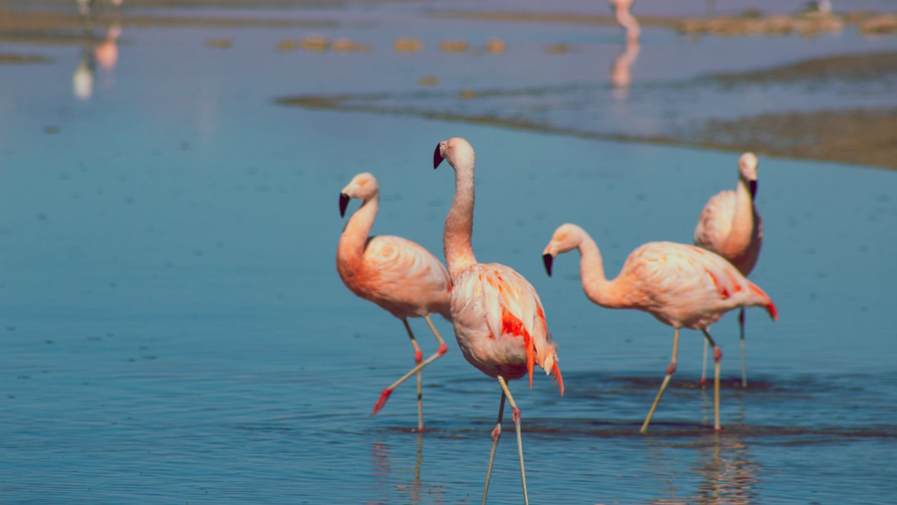 El cortejo de estos animales es verdaderamente asombroso y digno de disfrutar. Todos los flamencos machos, al unísono, danzan en el agua poco profunda. En este baile grupal elevan sus cabezas, aletean y emiten sonidos para atraer a las hembras. Es la hembra quien elige a su macho y este deberá continuar con el ritual unos minutos más, pero exclusivo para ella.