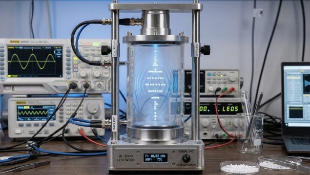 Un campo acústico estacionario actúa como colchón que mantiene las partículas en suspensión sin que nada las toque físicamente. Mientras levitan, las cuentas interactúan entre sí a través del mismo medio que las sostiene: el sonido.