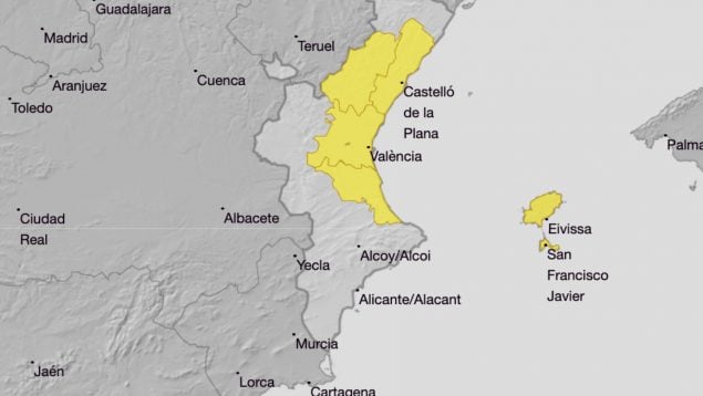 La AEMET ha decretado la alerta amarilla este lunes en la zona cero de la DANA