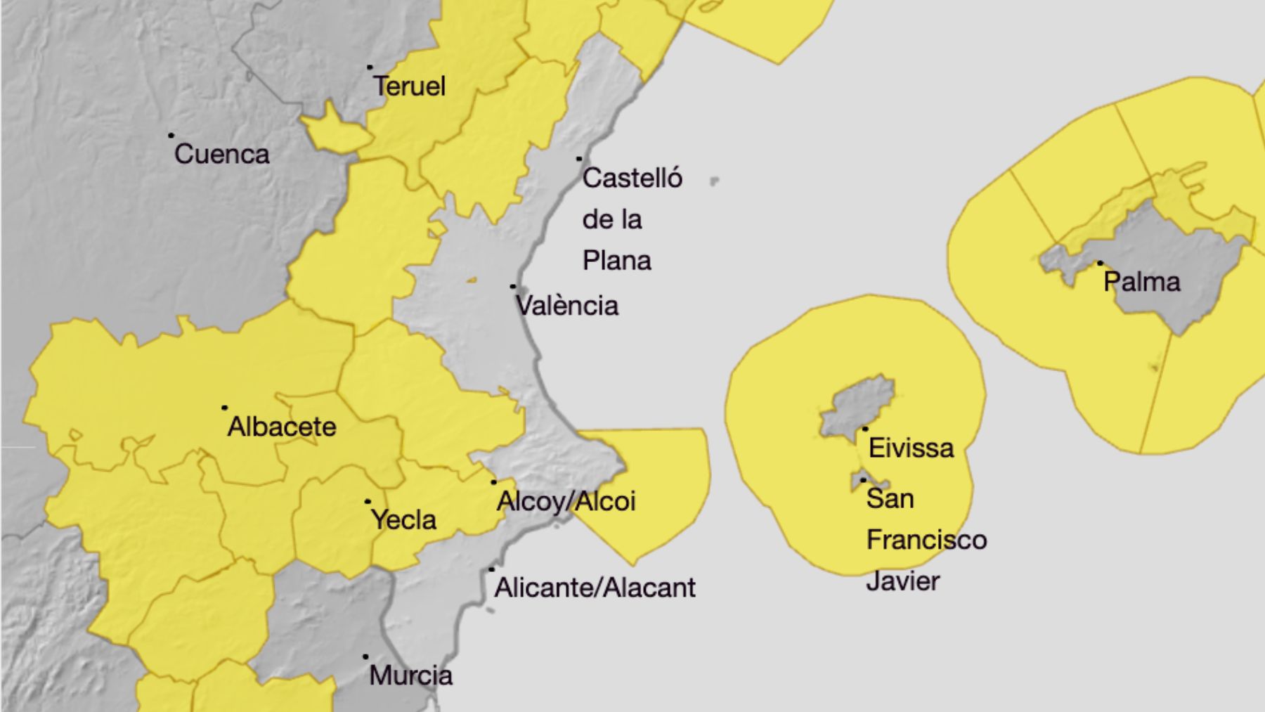 La AEMET ha decretado la alerta amarilla por viento en la Comunidad Valenciana para este lunes