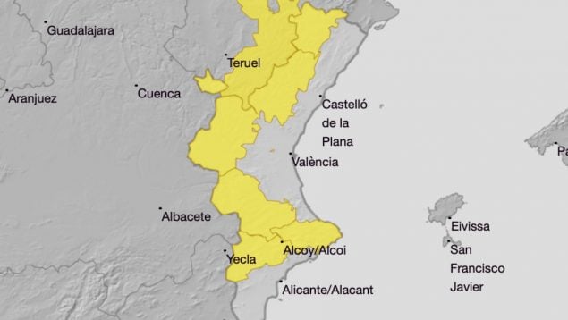 La AEMET ha decretado la alerta amarilla por viento en la Comunidad Valenciana
