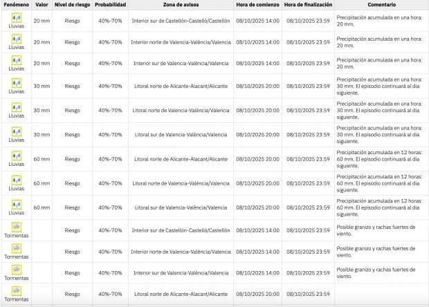 Actualizaciones en https://t.co/R3Fs2JzKgr pic.twitter.com/KHpEleP3Ba— AEMET Comunitat Valenciana (@AEMET_CValencia) October 7, 2025