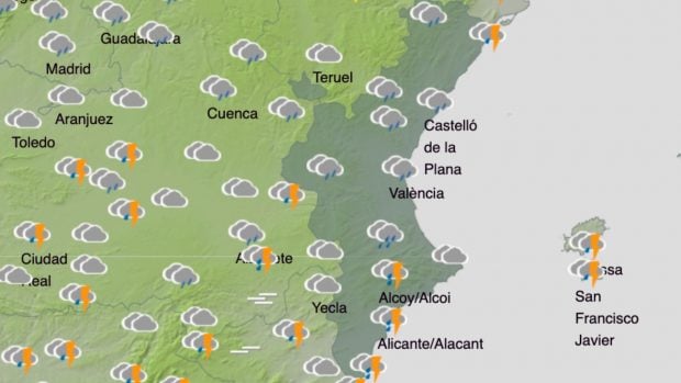 La Agencia Estatal de Meteorología ha decretado la alerta amarilla en todos los puntos de la Comunidad Valenciana. Las lluvias más fuertes se esperan en Castellón, donde puede haber una precipitación acumulada de 80 mm en el litoral sur de la provincia. En Valencia y Alicante, el acumulado en una hora puede ser de 20 mm, tanto en el interior como en la costa.