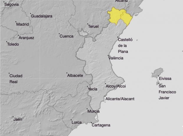 La AEMET ha decretado la alerta amarilla en el norte de la provincia de Castellón por lluvias y granizo
