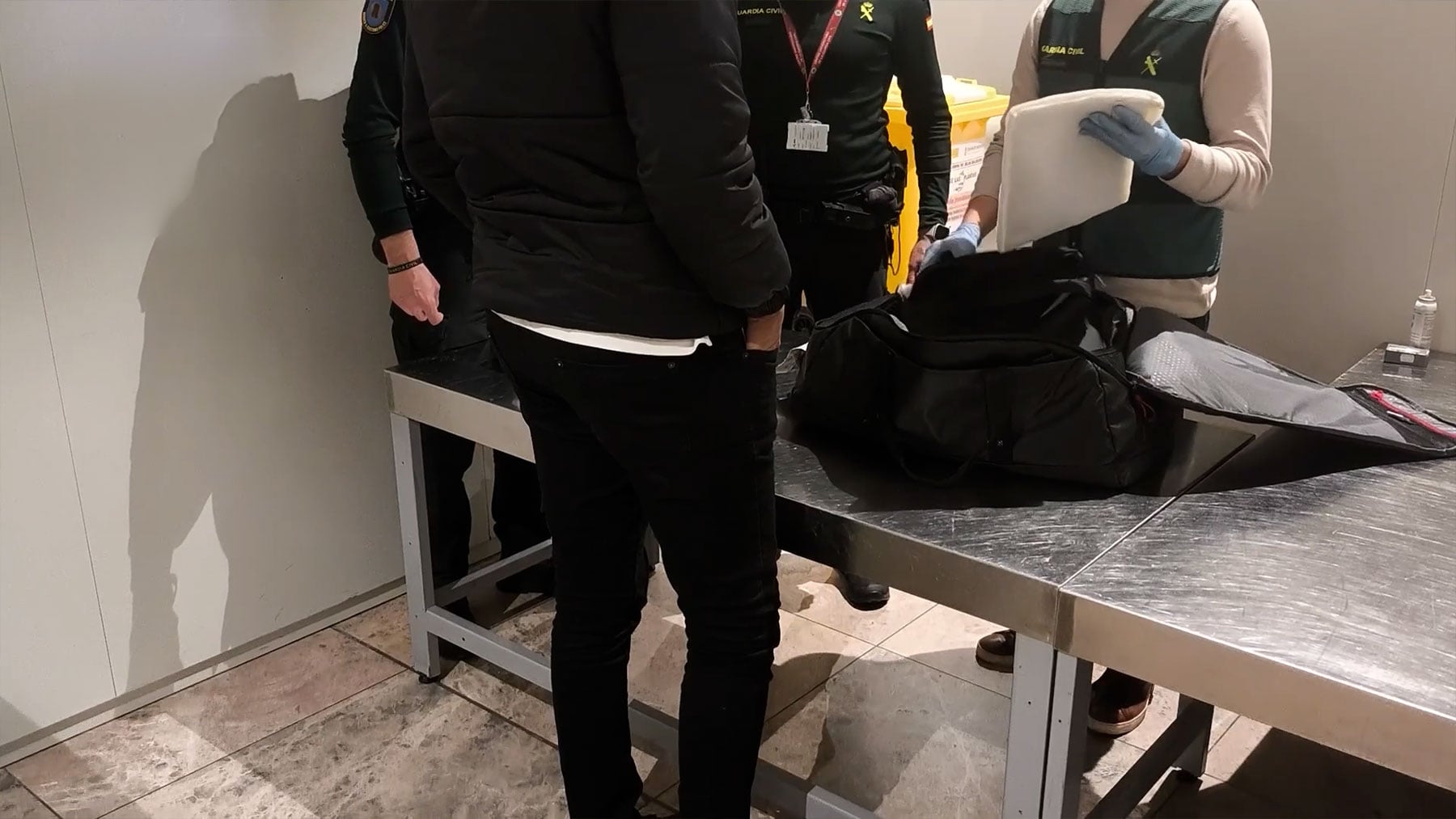 Los agentes se pusieron en contacto con la compañía aérea, a fin de que contactara con el propietario de la citada maleta y este se desplazara al aeropuerto para efectuar las comprobaciones oportunas. Una vez allí, la Guardia Civil detectó incoherencias en las manifestaciones del joven. Y, en su presencia, procedieron a abrir la maleta, como se puede ver en el vídeo.