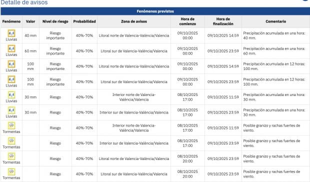 — AEMET Comunitat Valenciana (@AEMET_CValencia) October 8, 2025