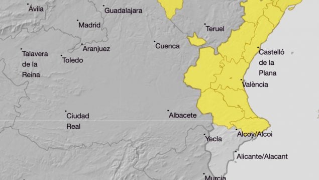La AEMET confirma la alerta amarilla por lluvias en la Comunidad Valenciana