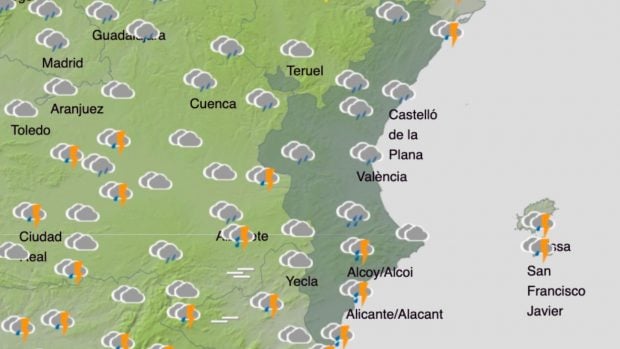 «Cielo nuboso, con chubascos débiles a moderados, que pueden ir acompañados de tormenta y ser puntualmente fuertes y persistentes», dice la AEMET sobre el tiempo en la provincia de Castellón, que será la más afectada por las lluvias. En el litoral norte y sur se espera una precipitación acumulada de 80 mm en 12 horas.