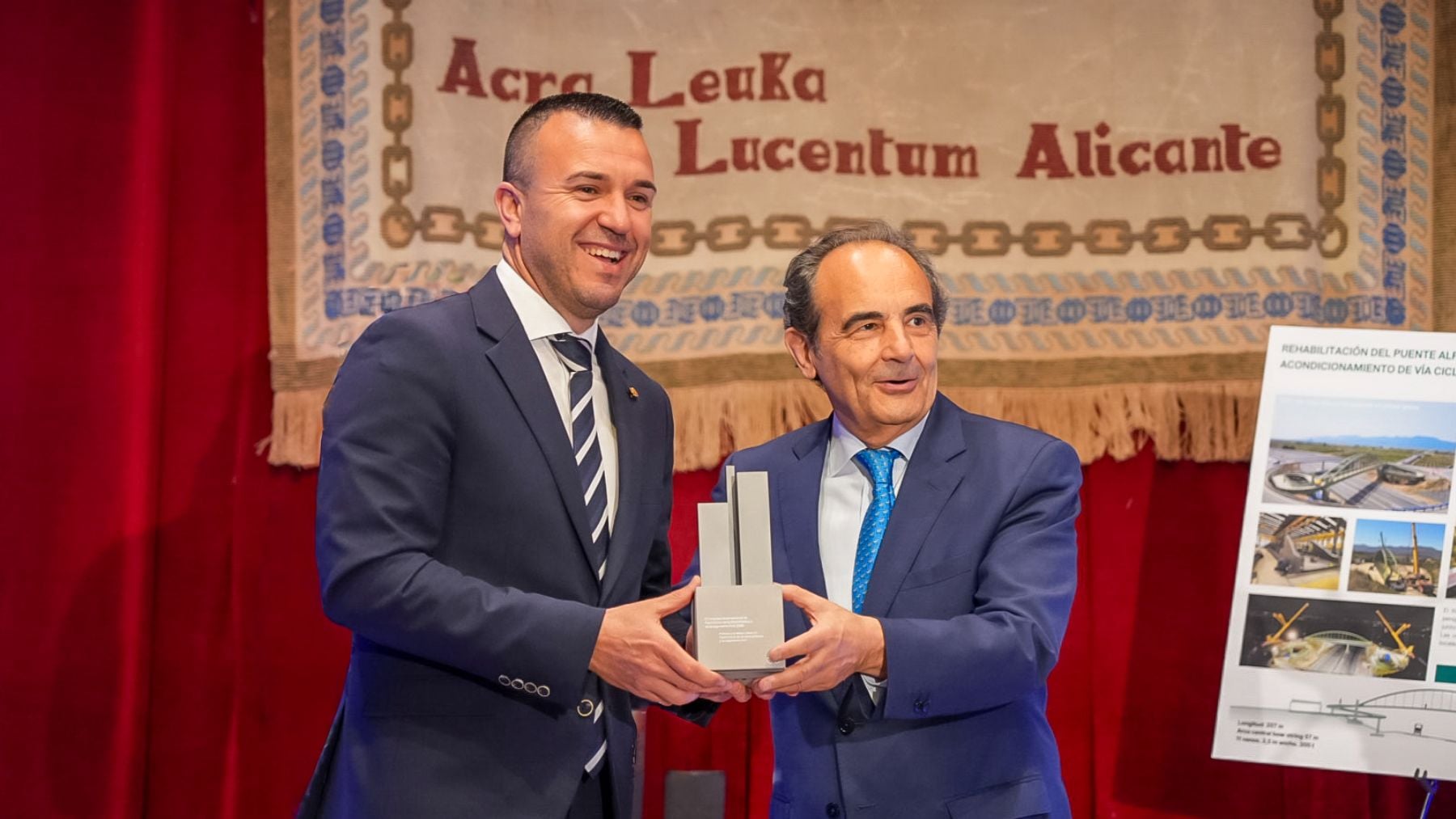 La Diputación de Valencia ha recibido el reconocimiento internacional en el marco del II Congreso Mundial por el Patrimonio de Obra Pública por la pasarela ciclopeatonal que conecta los municipios de Sueca y Fortaleny. Una infraestructura impulsada por el área de Carreteras de la institución provincial, que ha sido distinguida como una de las mejores actuaciones en el ámbito del patrimonio de la obra pública. El presidente de la institución provincial, Vicent Mompó, ha recogido el premio junto a la diputada del área de Carreteras, Reme Mazzolari, y el equipo técnico responsable de la citada área, en la segunda jornada del congreso, que se ha celebrado en un escenario emblemático: el Castillo de Santa Bárbara, en Alicante.