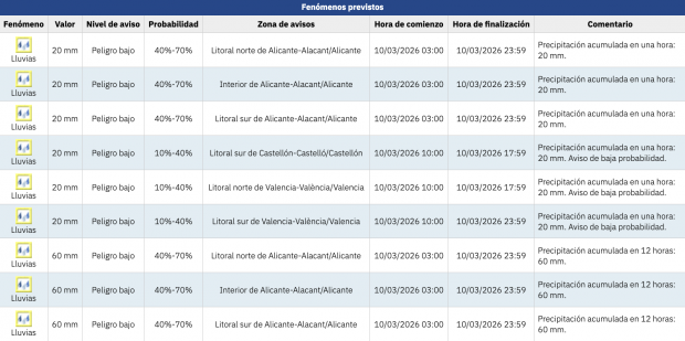 La predicción de la AEMET con respecto al tiempo en la Comunidad Valenciana para este martes 10 de marzo es la siguiente:
