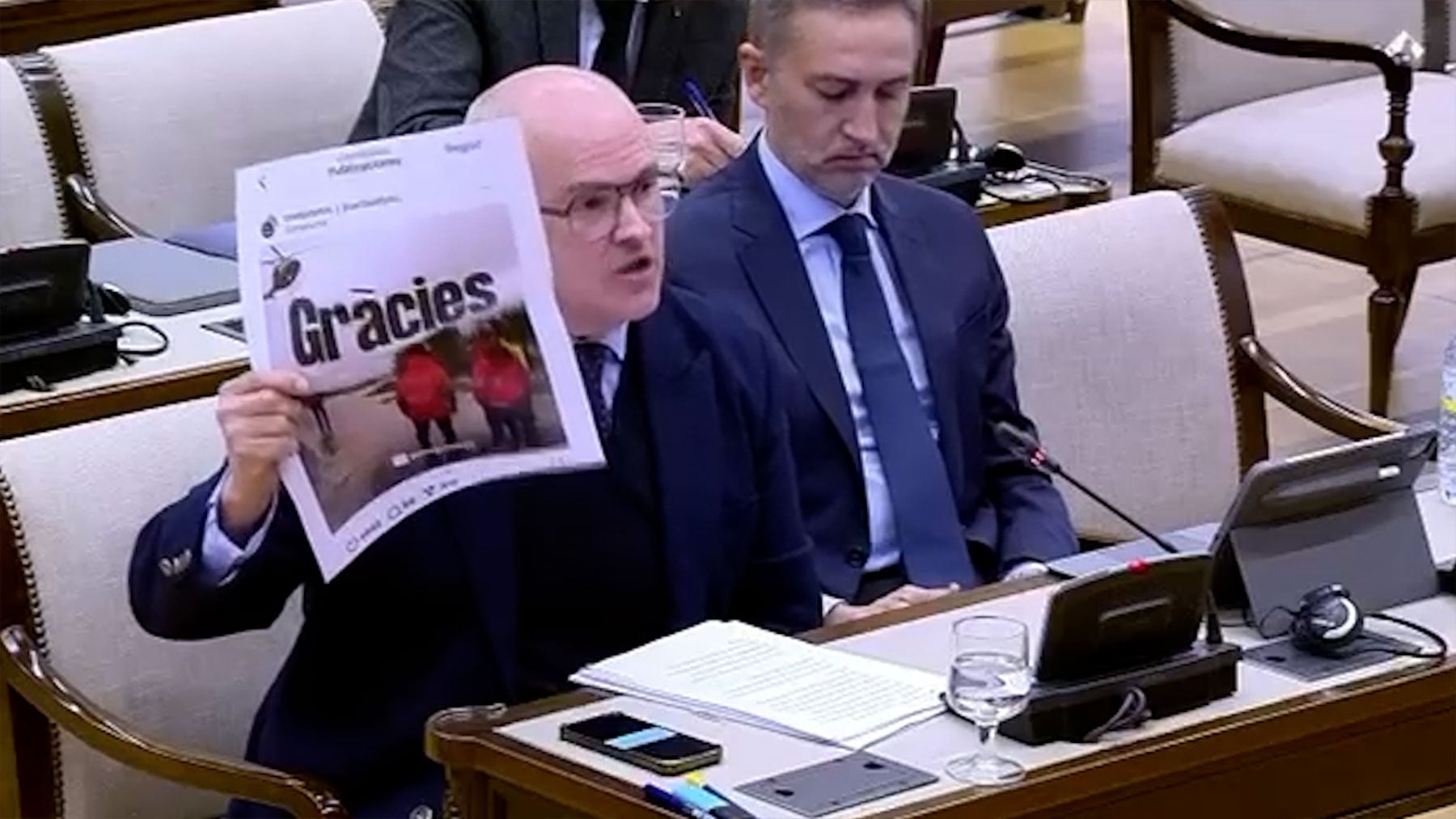 En concreto, Fernando Rosa ha mostrado una fotografía «publicada en las redes sociales de Compromís» al compareciente en la citada comisión de investigación, Avelino Mascarell. Y le ha preguntado si se reconocía en ella, a lo que Mascarell ha respondido afirmativamente. Y que también reconocía en ella al presidente de la Diputación de Valencia, Vicente Mompó.