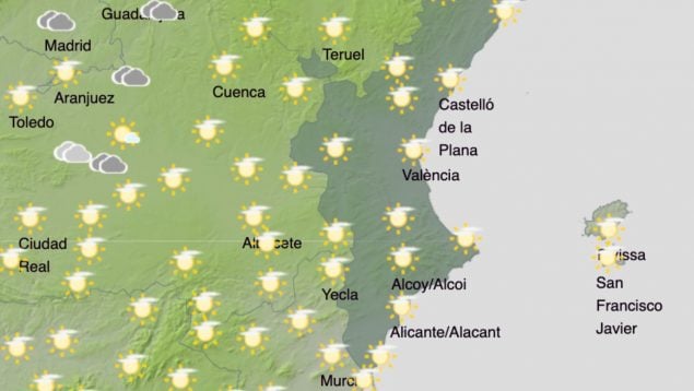 Alicante será otro de los puntos más cálidos de España en este martes 13 de enero. En la capital se llegará a los 16 ºC con mínimas de 8 ºC, mientras que en Elche, Orihuela y Alcoy se llegará a los 17 ºC. «Cielo poco nuboso, salvo intervalos de nubes bajas en el extremo sur. Temperaturas con cambios ligeros. Viento flojo de componente oeste, con un intervalo de componente sur por la tarde», predice la AEMET.