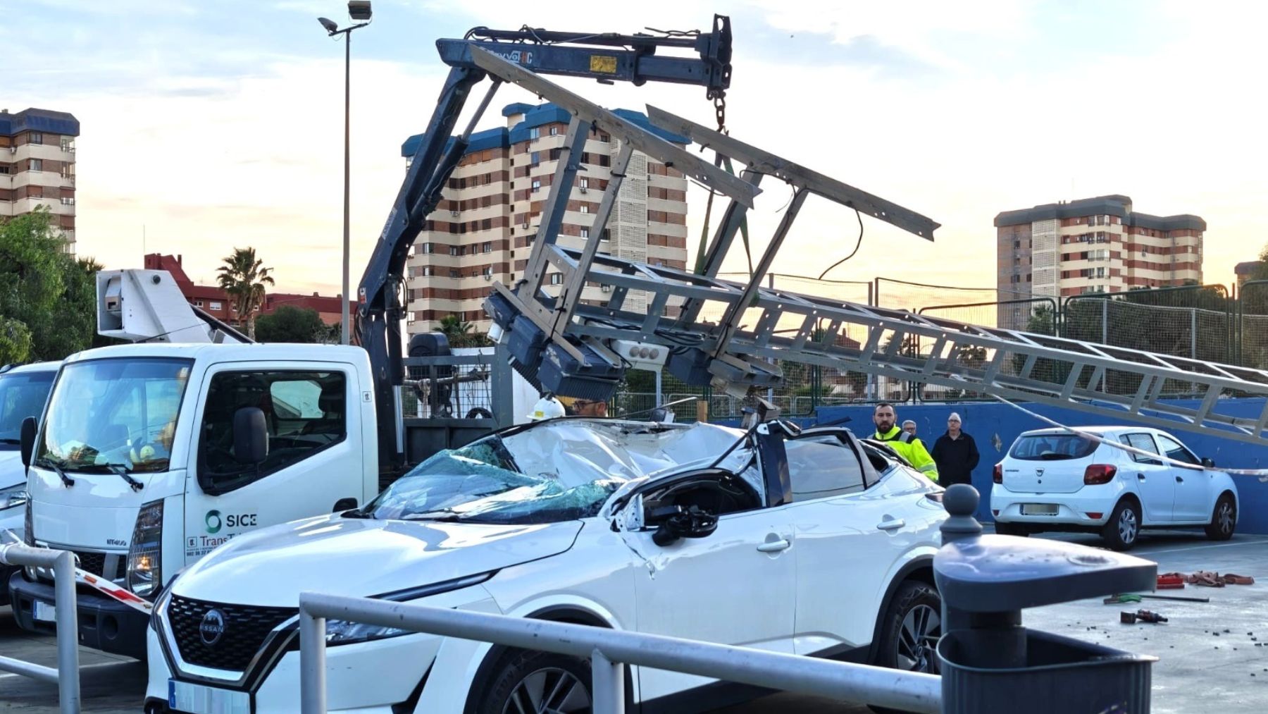 El temporal deja una herida en Altea y derriba una torre de luz que cayó sobre varios coches en Alicante