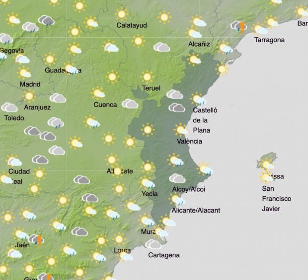 La predicción de la AEMET para este viernes en la Comunidad Valenciana es la siguiente: