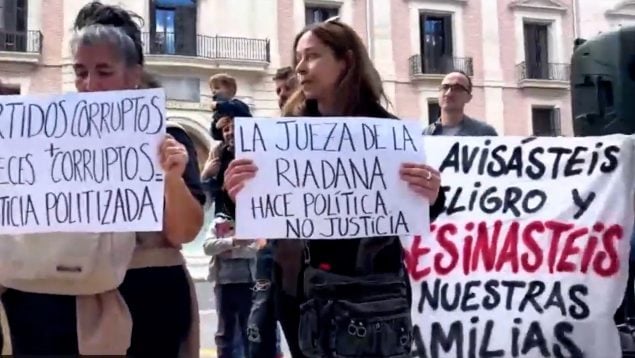 En la misma se han izado pancartas como una en que se podía leer: «¿Alguna vez has mandado a tu marido a trabajar por ti? Nuria Ruiz Tobarra sí, pero todavía lo niega». En otra pancarta rezaba: «La jueza de la riadana hace política, no justicia». Y en una tercera decía: «La justicia no puede ser herramienta ni arma».
