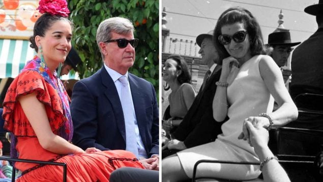 La fotografía de 1966 sitúa a Cayetana en una Feria muy distinta a la actual. En la imagen, donde aparece junto a su hijo y acompañada por Jacqueline Kennedy, no hay rastro del traje de flamenca ni de la puesta en escena que hoy domina el Real. Se trata de una escena social, elegante pero discreta, propia de una época en la que la Feria aún no funcionaba como pasarela. Sin embargo, con el paso del tiempo, la duquesa acabaría convirtiéndose en uno de los grandes iconos de este evento, marcando estilo con su particular forma de entender el traje de flamenca y consolidando una imagen inseparable de Sevilla.