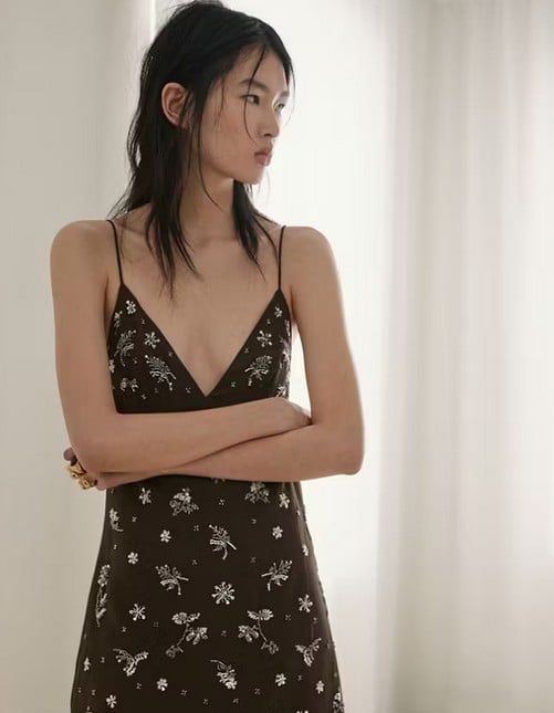 Es una opción pensada para eventos nocturnos o celebraciones donde se busca un look más impactante, y tiene un valor de 69,99 euros. Los abalorios añaden textura y brillo, convirtiéndolo en una prenda protagonista que requiere pocos complementos adicionales.