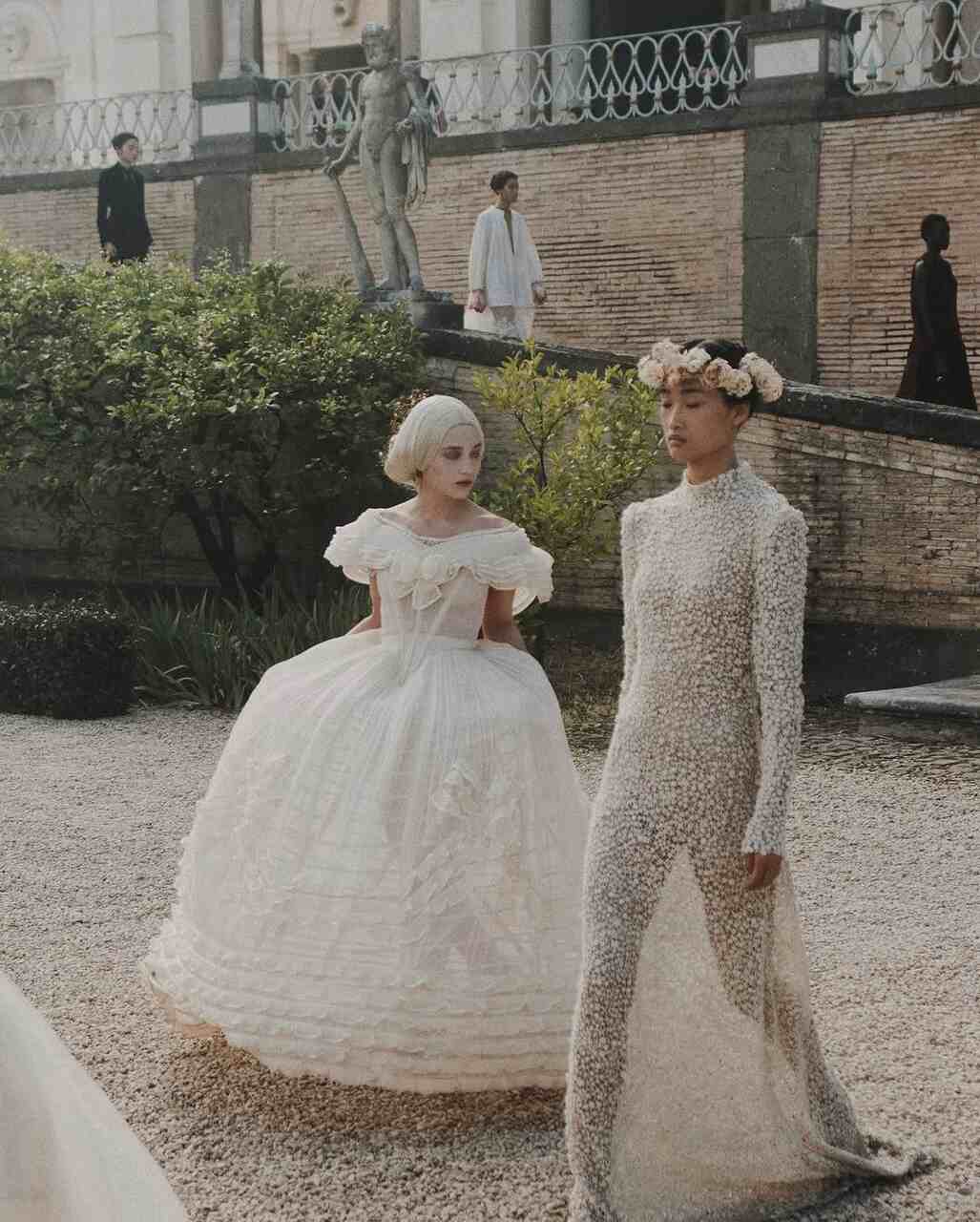 El desfile estuvo acompañado por el cortometraje I Fantasmi del Cinema, dirigido por Matteo Garrone, con guion de Chiuri y su hija Rachele Regini. Una pieza que hablaba de mujeres, fantasmas y recuerdos, en una Roma que parecía respirar en blanco y negro, como un filme de Fellini.