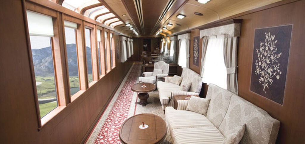 Cada detalle respira historia: los acabados en madera noble, los sillones tapizados a mano, los espejos de época, las lámparas de cristal. Nada es casual. Cada elemento está ahí para hacer que el pasajero se sienta parte de una novela ambientada en los años veinte, pero con todas las comodidades del siglo XXI.