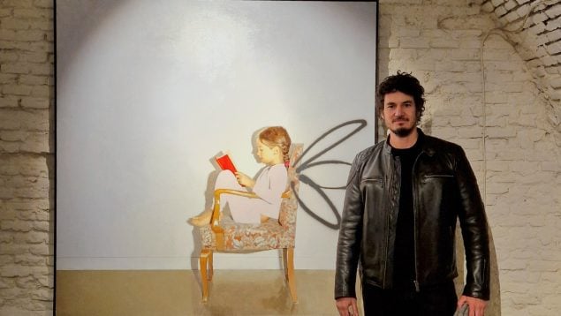 Carlos Tárdez juega al despiste. Parece un chaval recién salido de la Facultad de Bellas Artes, pero solo lo parece. Su hija Gala es la protagonista de Todo y nada más (óleo sobre lino de 150 cm x 150 cms.), obra ganadora del IV Premio Almuzara de Pintura, dotado con 9.000 euros que ayer recogió en la sede madrileña de la editorial.