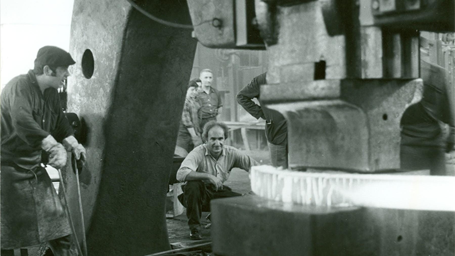 Sin embargo, en 1950 Chillida sufrió una crisis artística y abandonó la capital francesa para volver a casa. Ese mismo año se casó con Pilar Belzunce, con quien tendría 8 hijos a lo largo de su vida. La segunda mitad del siglo XX traería, además, un hallazgo determinante para la trayectoria del escultor. Atraído por el sonido de una fragua próxima a su casa en Hernani, Chillida descubrió de la mano de un herrero el hierro de verdad por primera vez, de una manera que nunca antes había visto en los museos o galerías que había frecuentado.