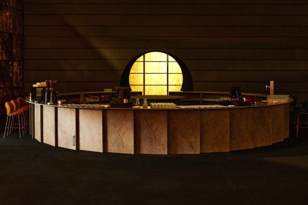 Su nueva superficie mineral ĒCLOS® con tecnología INLAYR®, cuyos primeros colores incorporan hasta casi un 90% de material reciclado en su composición, protagoniza dos elementos pivotantes del Lounge. Por un lado, conforma la espectacular barra circular, elaborada en el color Legnd, que destaca en el espacio abierto del Lounge-Bar. Una pieza integral escultórica en forma de anillo que combina la aplicación de sobre o encimera, junto con un conjunto de planos en el soporte de la misma, todo ello en ĒCLOS® Legnd. Este mismo color ha sido utilizado por los arquitectos para la mesa principal de la sala VIP, en el espacio de restauración.