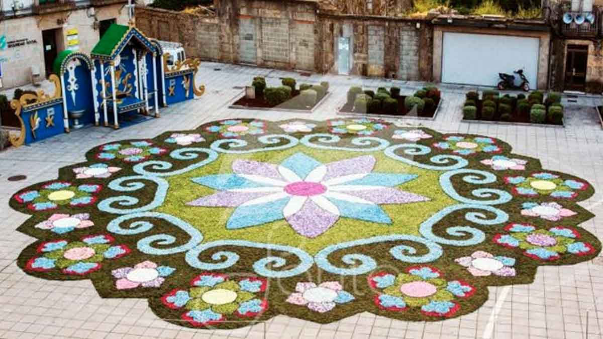 Una gran alfombra floral reproducirá el rosetón de la puerta del Sarmental de la Catedral de Burgos en su 800 aniversario, según han avanzado desde la Asociación de Alfombristas do Corpus Christi de Ponteareas.