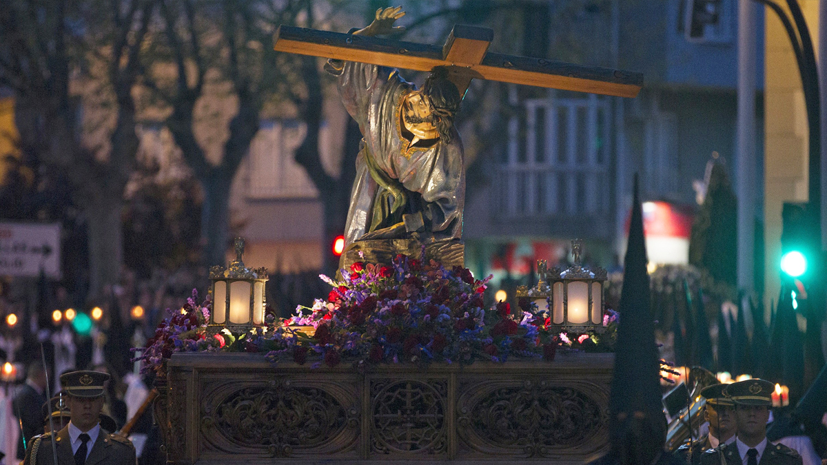 Así, se ha podido ver desfilar un ejemplo de la escuela sevillana como es ‘La Despedida de Jesús y su Madre’, del cacereño afincado en Andalucía Enrique Pérez Comendador; y otro de la imaginería de influencia castellana representada por el paso de la Tercera Caída, del que es autor el bilbaíno Quintín de Torre.