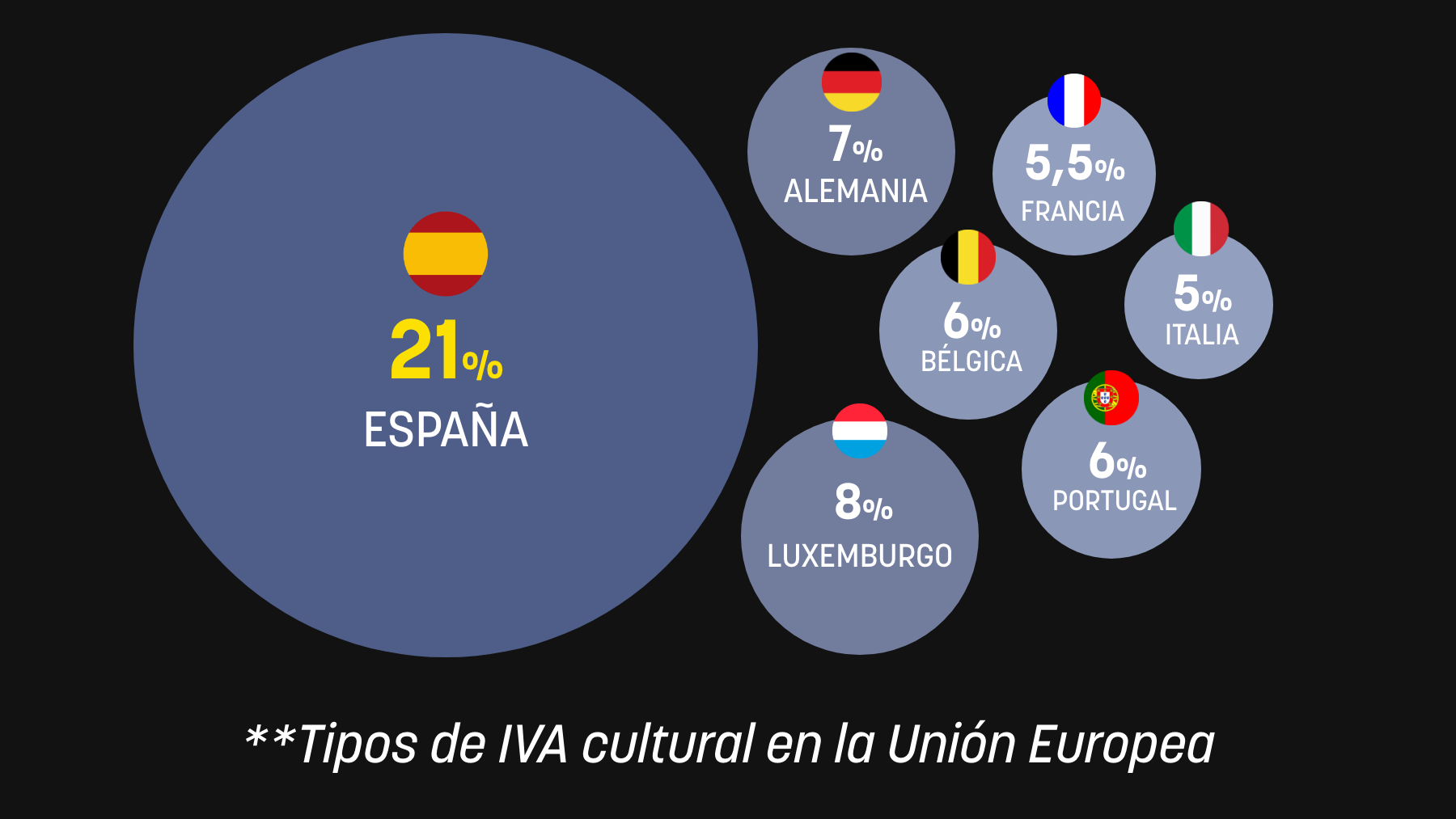 Los firmantes de este Manifiesto asegura que «en 2022 ya pedimos al Ejecutivo que, por favor, bajara el IVA cultural. Si los demás Estados miembro de Europa bajaban su IVA, como ha pasado ya, la posición de España en terreno competitivo quedaría gravemente afectada. Dos años persiguiendo al Gobierno para que asuma la trasposición europea, que es de obligado cumplimiento, y nadie mueve pieza. Y nosotros ¡nos quedamos sin tiempo!».