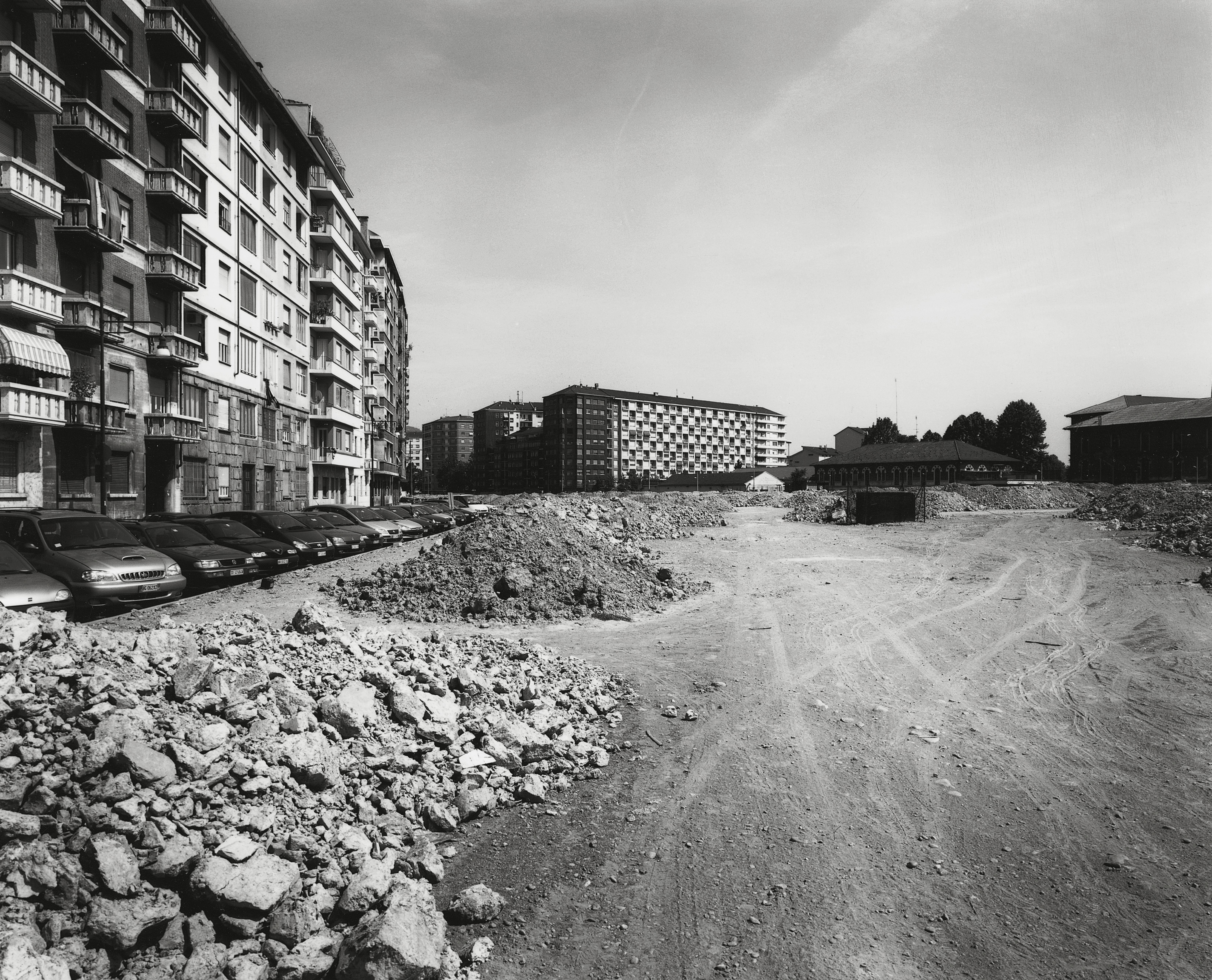 En las tomas de Gabriele Basilico (Milán, 1944 – 2013) impresiona la atmósfera suspendida, la sutil atención a calibrar los espacios y las simetrías internas, la ausencia de figuras humanas. Sus fotografías parecen representaciones metafísicas de un espacio cuyos elementos de verticalidad y profundidad están acentuados gracias a la predilección por el uso del blanco y negro.