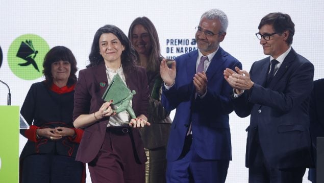 A la ceremonia de entrega del primer Premio Aena de narrativa otorgado a Samanta Schweblin han asistido el presidente de la Generalitat, Salvador Illa, el alcalde de Barcelona, Jaume Collboni, el ministro de Industria, Jordi Herey, la consellera de Cultura, Sònia Hernández, y el presidente y consejero delegado de Aena, Maurici Lucena.