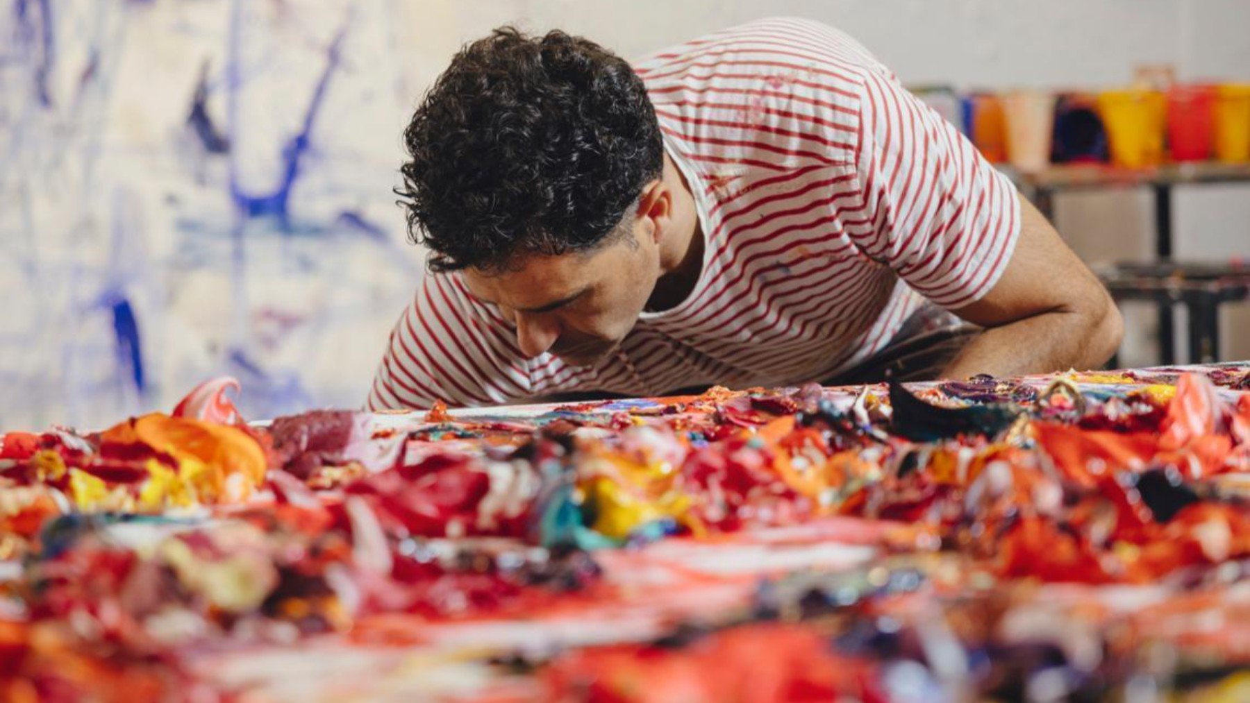 Volver a casa y desde ahí, desde la tranquilidad de las raíces, enfocarse en llegar a todo el mundo. El artista Ismael Lagares (Huelva, 1978) se instala en su municipio natal de Bollullos Par del Condado con la apertura de un fascinante estudio desde el que busca la soledad del trabajo y huye de los ruidos de la ciudad, donde se expone su obra. Una obra donde la plasticidad, la acción del artista y el color toman la delantera a otros aspectos formales. Es expresionista, es abstracto y quiere que sus vecinos lo vean y se acerquen.