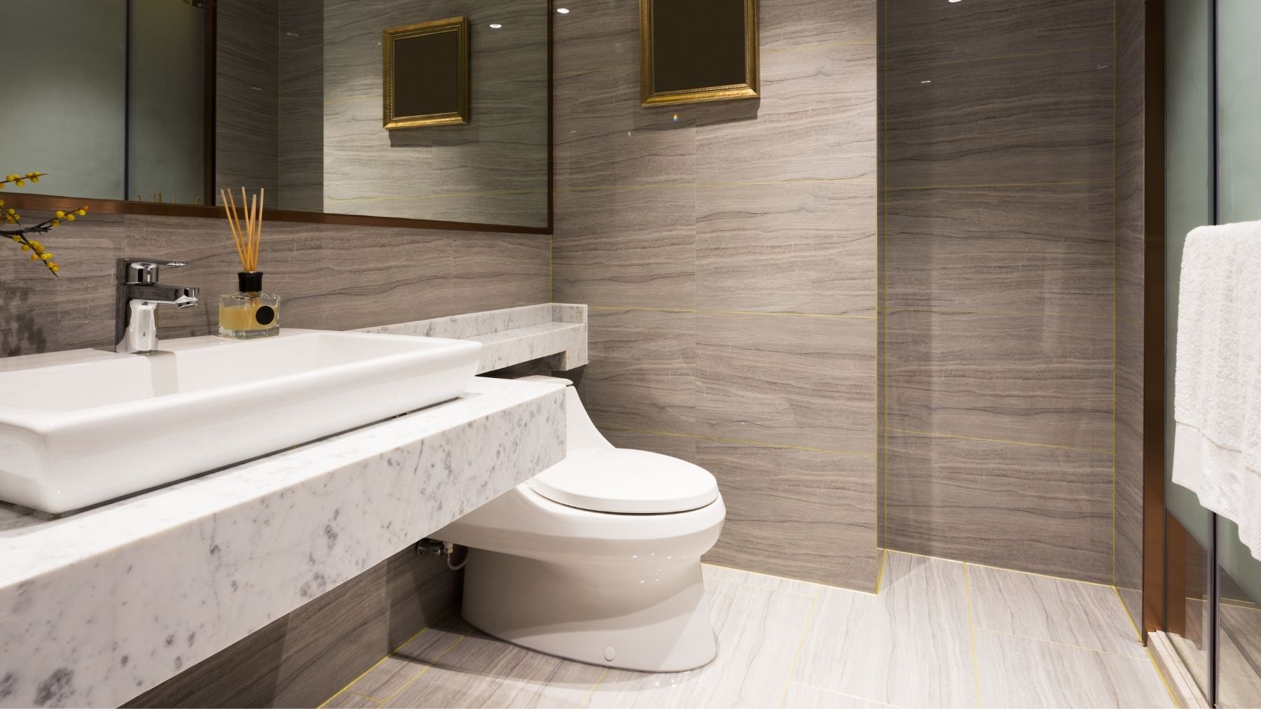 Si buscas un baño con un estilo más moderno y minimalista, los suelos vinílicos que imitan mármol blanco o gris son una opción excelente. Estos diseños aportan luminosidad y sensación de amplitud, además de transmitir un aire de lujo sin necesidad de grandes obras. El mármol gris, con vetas sutiles, se puede combinar con muebles de colores neutros, como gris claro o beige.