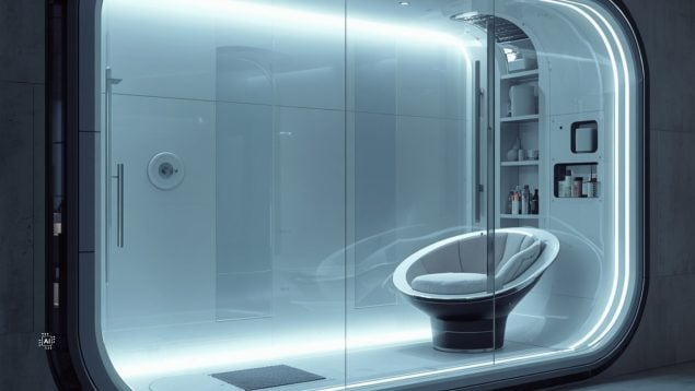 El dispositivo, presentado bajo el nombre provisional de Human Washing Machine, no se plantea como una simple mejora de la ducha tradicional, sino como un salto cualitativo que integra IA, microburbujas, sensores biométricos y elementos de bienestar sensorial en una cápsula. En su interior, los usuarios pueden recostarse cómodamente en una plataforma ergonómica mientras los sistemas integrados realizan un escaneo corporal completo. Así, a través de una serie de sensores de humedad, temperatura y posición, la «lavadora humana» ajusta los parámetros de lavado. El proceso estándar dura unos 15 minutos y se divide en varias etapas: