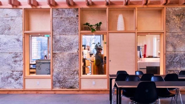 El equipo de Rebound y Det Levende Hus busca demostrar que los materiales biogénicos ofrecen un rendimiento elevado. Más allá de las puertas, la empresa ya trabaja en paneles acústicos y techos que aprovechan las mismas propiedades.