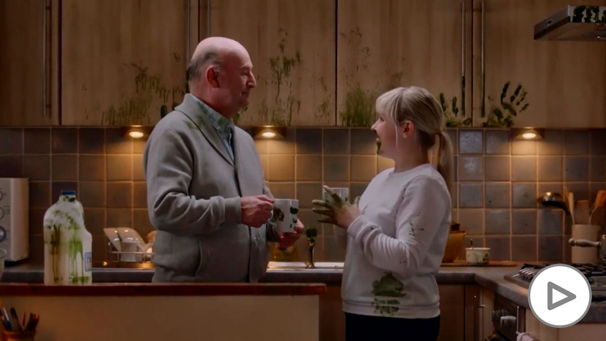 Evidentemente, ninguno de los dos es consciente de que la joven tiene Covid-19, algo que de hecho es también una realidad para todos nosotros, que visitamos a nuestros familiares sin saber si estamos o no contagiados. En el anuncio podemos ver como a partir de ese abrazo, el contagio se extiende por las caras de nieta y abuelo, por las manos, las superficies, los objetos que tocan, los que comparten. Al final un simple abrazo y el hecho de que la chica le prepare una taza de té a su abuelo, hace que todo quede manchado de verde.