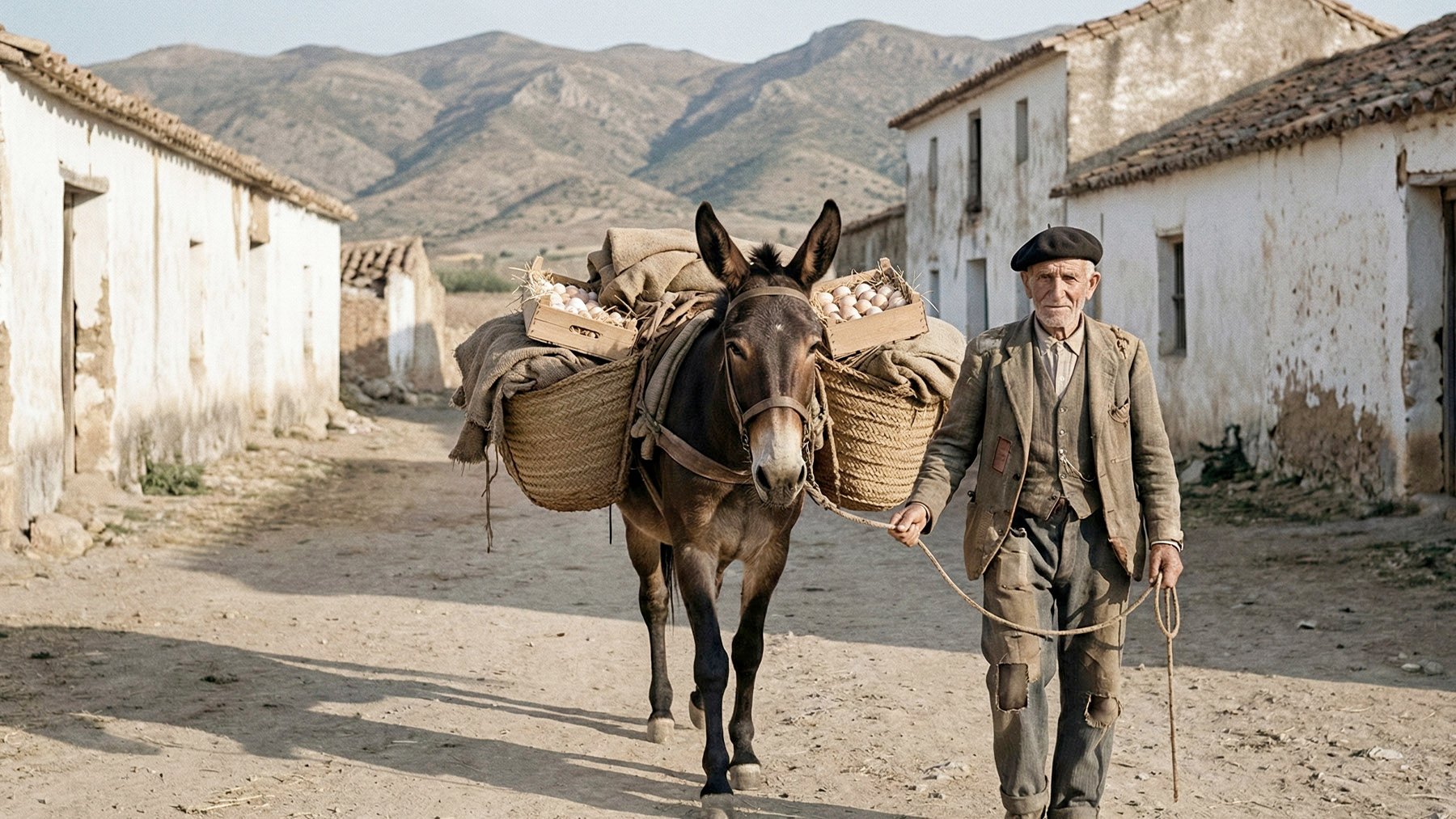 En amplias zonas de Andalucía, Murcia o Castilla, los hogares producían huevos, trigo, lana o animales de corral, pero necesitaban adquirir tejidos, azúcar, arroz o utensilios que no podían fabricar. La posguerra consolidó así una red informal de intermediarios que recorrían veredas y caminos transportando mercancías a lomos de mulos o burros.
