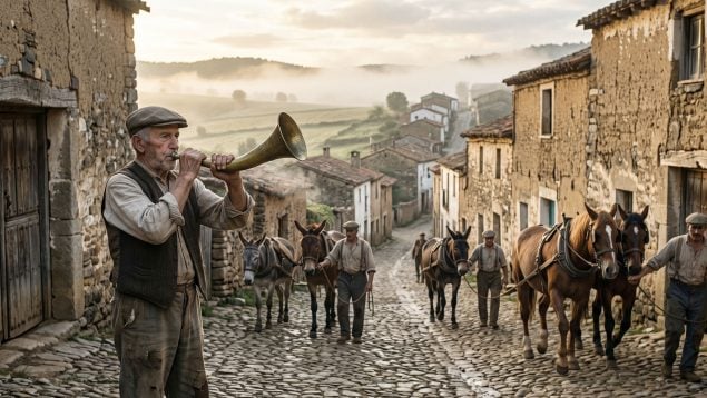 Uno de esos sistemas estaba ligado a los animales de tracción, el motor real de la economía rural de la posguerra. Sin caballos, mulas y burros bien alimentados no había campo que trabajar ni cosecha posible. Para garantizarlo, los pueblos recurrieron a un oficio comunal casi desconocido hoy, que cada mañana comenzaba con el sonido de una corneta.