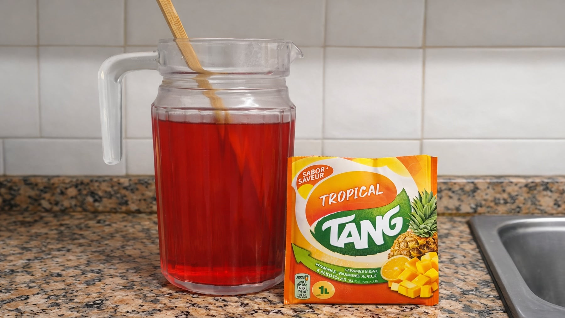 TANG fue uno de los refrescos más populares de finales del siglo XX. A diferencia de otras bebidas, no se vendía listo para beber, sino en sobres de polvo que había que mezclar con agua para preparar la bebida en casa.