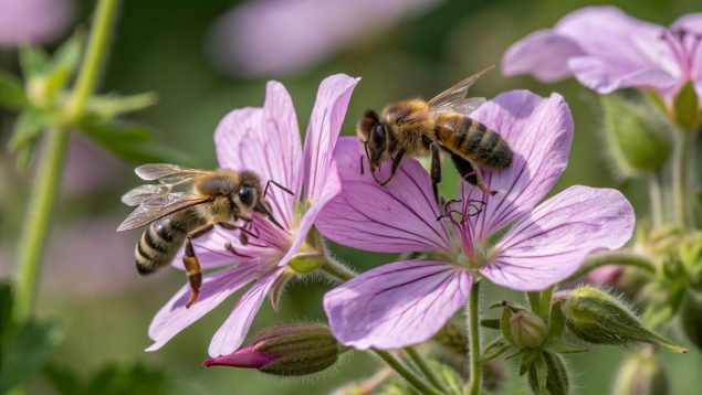 La planta que atrae a las abejas es el geranio, especialmente el geranio sanguíneo y su variedad Rozanne. Esta tiene algo que vuelve locas a las abejas.