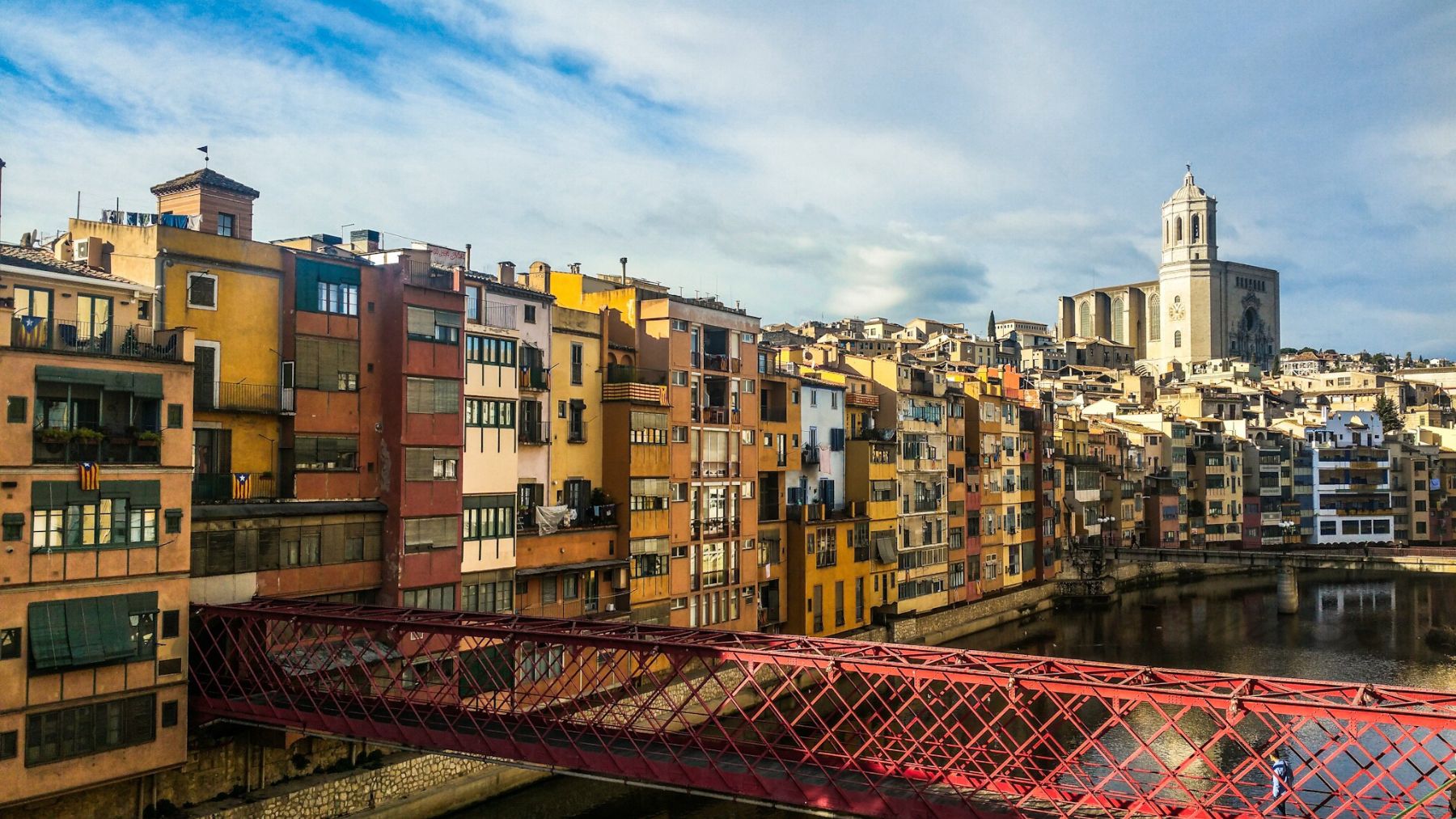 El encantador paisaje de las Casas del Onyar en Girona, con fachadas de colores vibrantes, cuelga sobre el río Oñar en el casco antiguo. Desde el Puente de Piedra, se aprecia el hermoso reflejo de estas casas sobre el río, con la Catedral y la torre de la iglesia de Sant Feliu de fondo. La mejor vista se obtiene desde el puente de las Peixateries Velles, diseñado por Gustave Eiffel en 1877.
