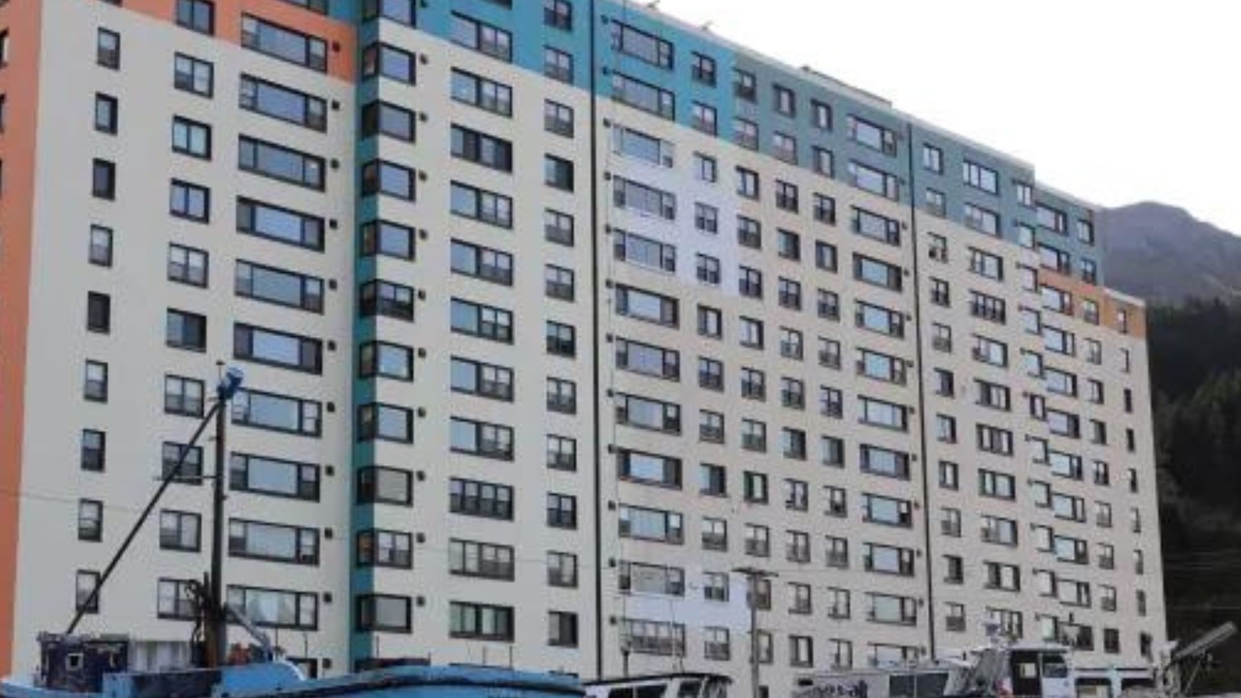 Se trata de Whittier, un pintoresco pueblo ubicado en Alaska. Con una superficie de apenas 50 kilómetros cuadrados y una población que apenas supera los 200 habitantes, en el entro de esta singular comunidad se encuentra el imponente edificio conocido como Torres Begich. Este complejo consta de tres módulos de 14 plantas cada uno.