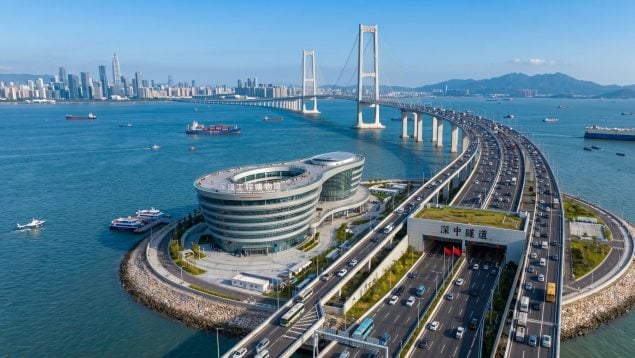 La estructura, conocida como enlace Shenzhen-Zhongshan, conecta estas dos grandes ciudades del sur de China a través de la bahía Guangdong-Hong Kong-Macao.