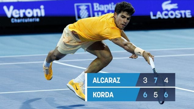 Sebastian Korda había mostrado una gran solidez al servicio que le permitió mantener la igualada durante la primera mitad del primer set. Salvó dos puntos de break y desaprovechó otros tantos. Pero en el octavo juego cantó bingo. Alcaraz falló y el americano aprovechó para ponerse por delante. Cerró el set en el siguiente juego, sin dar opción al murciano.