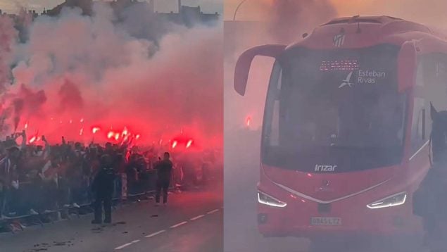 Se creó un ambiente hipnótico, únicamente rasgado por los caballos de la Policía que escoltaban el autobús del Atlético. Sobre la carretera, el color rojo, en el cielo, el humo de las bengalas y un cántico que se perdía en la noche. «Atleti, Atleti, Atlético de Madrid». La afición rojiblanca confía en que su equipo se revitalice y deje a un lado la eliminación continental contra el Real Madrid y la derrota liguera con el Barça.
