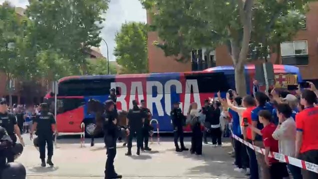 Así, a la llegada del Barcelona al Coliseum, la afición del Getafe recibió de forma hostil a los de Hansi Flick, que llegaron en autobús como es normal y también sin ningún tipo de incidente. Algunos aficionados del equipo madrileño sacaron sus banderas de España a la llegada de los culés al Coliseum.